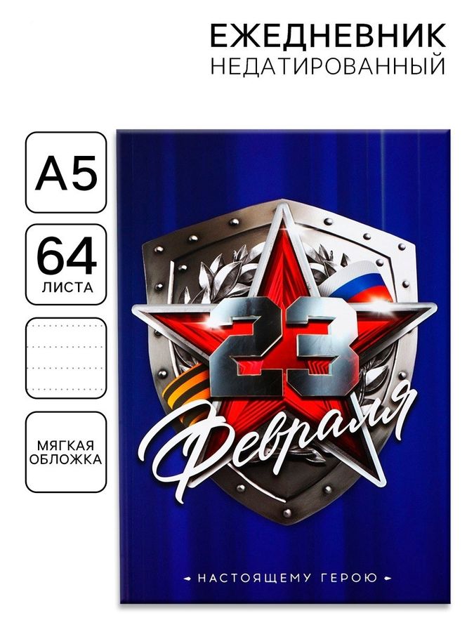 Ежедневник А5 64л недатир. мягк.обл. в точку С 23 февраля ArtFox 10708604