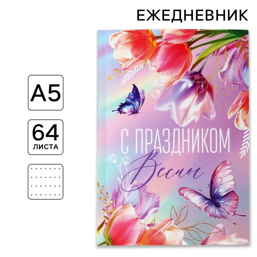 Ежедневник А5 64л недатир. мягк.обл. в точку А5 С праздником весны ArtFox 10708605