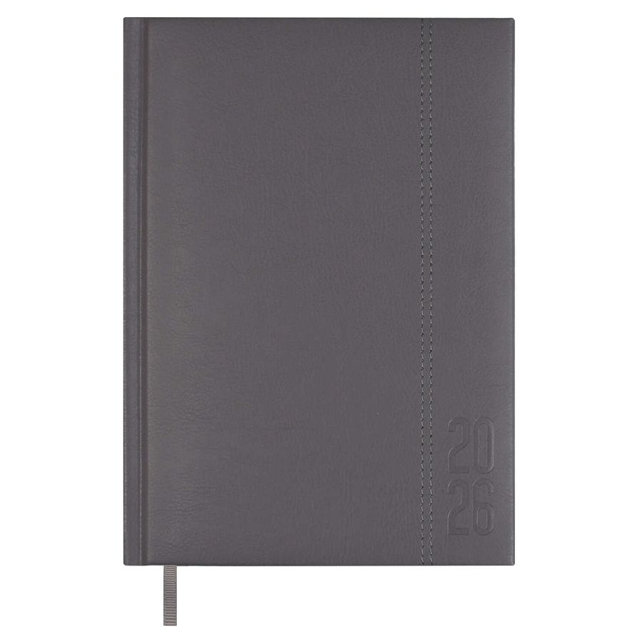 Ежедневник датированный 2026 ESCALADA, А5, 176 л., арт. 70229/ 15 НАППА СЕРЫЙ (кожзам: 146х211 мм, твёрдый переплёт с поролоном, материал обложки: искусственная кожа "Наппа"; декор: блинтовое тиснение, отделочная строчка; способ крепления блока: ниткошвейный; вн. блок: 176 л., белый офсет 70 г/м², печать в одну краску (линия), справочный материал: есть; перфорация углов блока: нет; закладка/-и: одно ляссе; каптал: есть; форзац: без печати; персонализация возможна: да; индивидуальная упаковка: промостикер + ПЭТ-пакет)