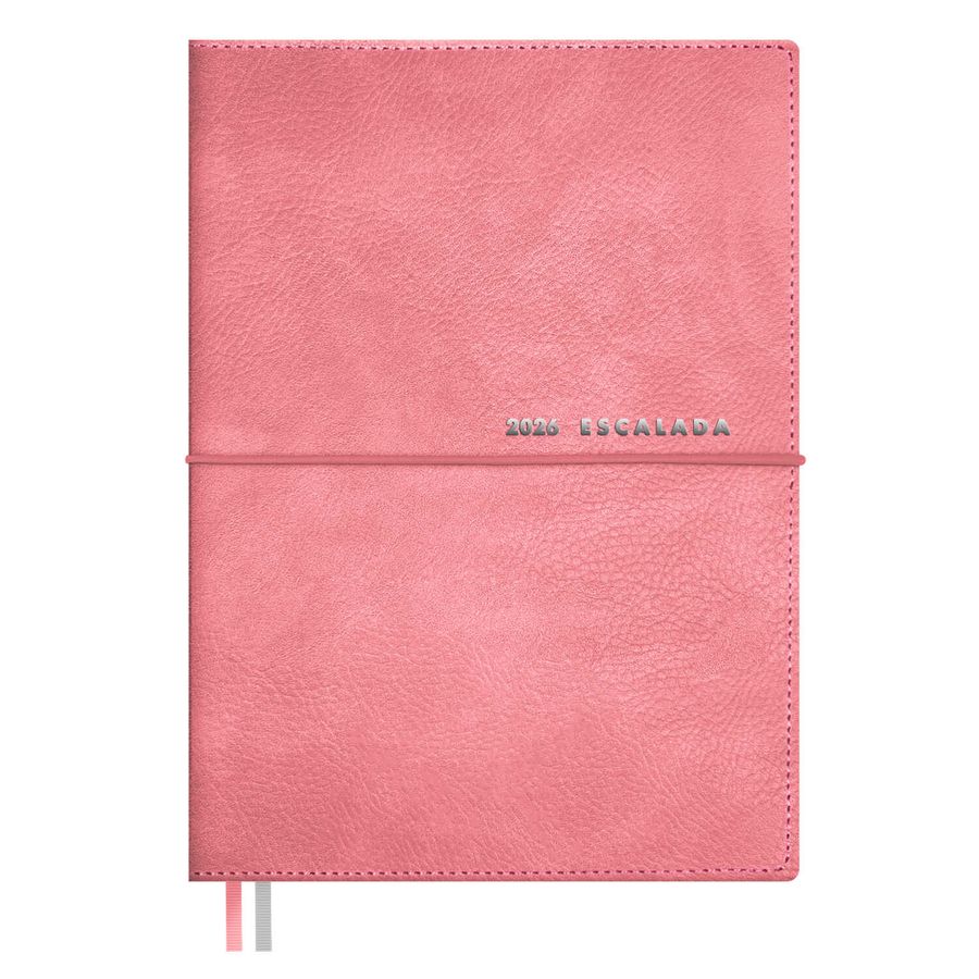 Ежедневник датированный 2026 ESCALADA, А6+, 128 л., арт. 70311/ 20 ШЕВРЕТ РОЗОВЫЙ (кожзам: 128х176 мм, мягкий переплёт, запаянный край, съёмная обложка, материал обложки: искусственная кожа "Шеврет"; декор: тиснение фольгой; способ крепления блока: вставной блок, ниткошвейный; вн. блок: 128 л., кремовый офсет 70 г/м², печать в две краски (линия), справочный материал: есть; перфорация углов блока: нет; закладка/-и: два ляссе; каптал: нет; форзац: печать пантоном; особенности: застёжка-резинка, закладка пластиковая, украшенная тиснением фольгой, в комплекте; персонализация возможна: да; индивидуальная упаковка: промостикер + ПЭТ-пакет)