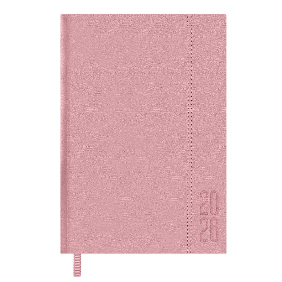 Ежедневник датированный 2026 ESCALADA, А6+, 176 л., арт. 70289/ 20 НАППА РОЗОВЫЙ (кожзам: 126х174 мм, твёрдый переплёт с поролоном, материал обложки: искусственная кожа "Наппа"; декор: блинтовое тиснение, отделочная строчка; способ крепления блока: ниткошвейный; вн. блок: 176 л., белый офсет 70 г/м², печать в одну краску (линия), справочный материал: есть; перфорация углов блока: нет; закладка/-и: одно ляссе; каптал: есть; форзац: без печати; персонализация возможна: да; индивидуальная упаковка: промостикер + ПЭТ-пакет)