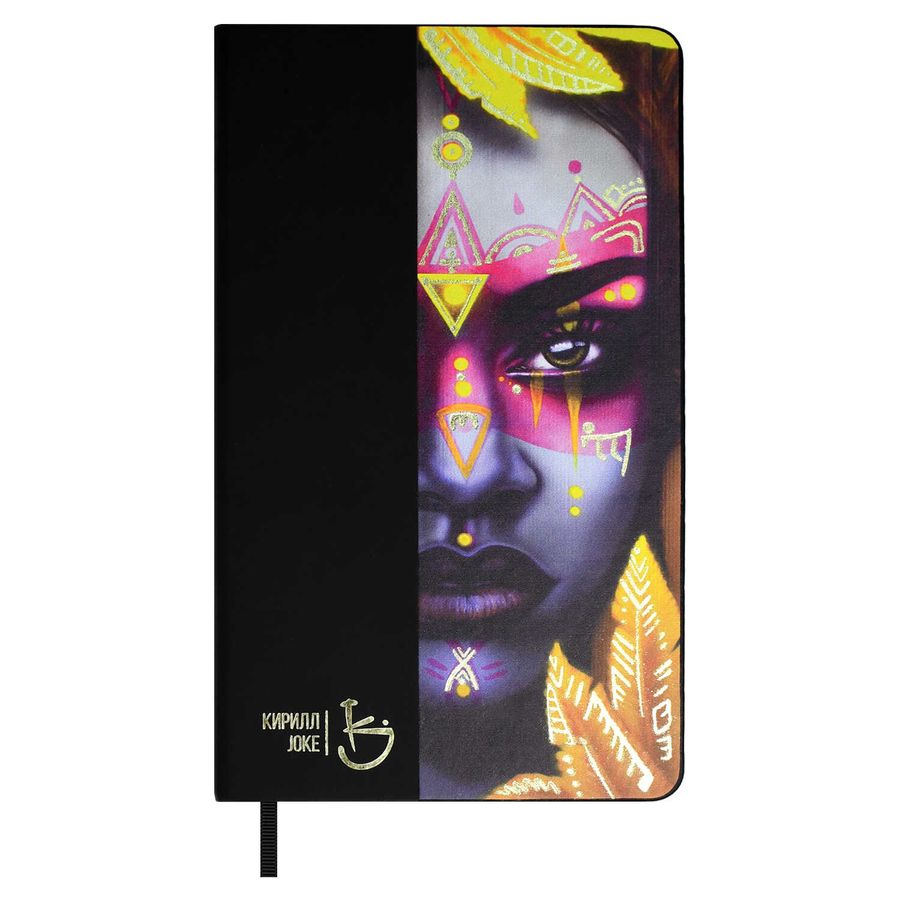 Ежедневник недатированный ESCALADA, #КИРИЛЛ JOKE, А5, 160 л., арт. 70671/ 15 ПЛЕМЯ (кожзам: 126х211 мм, твёрдый переплёт, запаянный край, материал обложки: искусственная кожа "Софт-тач"; способ крепления блока: ниткошвейный; декор: печать полноцветная высокая, тиснение фольгой; вн. блок: 160 л., кремовый офсет 70 г/м², печать в одну краску (линия), справочный материал: есть; перфорация углов блока: нет; отделка среза: окрашивание пантоном; закладка/-и: одно ляссе, каптал: есть; форзац: печать пантоном, тиснение фольгой, особенности: на обложке ежедневника использованы работы участника и организатора международных граффити и стрит-арт фестивалей, создателя социальных проектов, творческого деятеля, художника-самоучки – Кирилла Соколова (JOKE); персонализация возможна: да; индивидуальная упаковка: промостикер + ПЭТ-пакет)