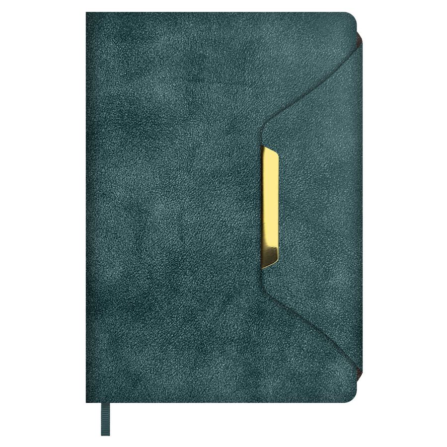 Ежедневник недатированный ESCALADA, А5, 160 л., арт. 70610/ 15 СПИЛОК ДЕЛАВЭ БИРЮЗОВЫЙ (кожзам: 146x211 мм, твёрдый переплёт, запаянный край, материал обложки: искусственная кожа "Спилок делавэ"; способ крепления блока: ниткошвейный; декор: металлический шильд; вн. блок: 160 л., кремовый офсет 70 г/м², печать в одну краску (линия), справочный материал: есть; перфорация углов блока: нет; отделка среза: фольгирование; закладка/-и: одно ляссе, каптал: есть; форзац: печать пантоном, тиснение фольгой, особенности: магнитный клапан; персонализация возможна: да; индивидуальная упаковка: ПЭТ-пакет)