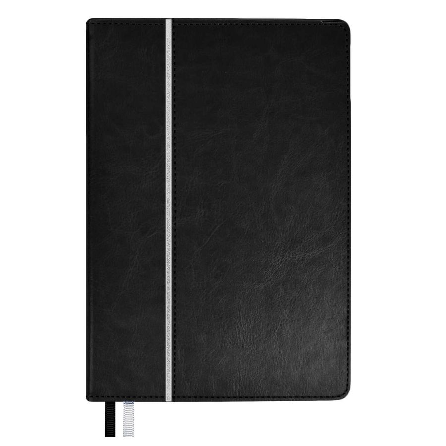 Ежедневник недатированный ESCALADA, А5, 160 л., арт. 70622/ 15 САРИФ ЧЁРНЫЙ/БЕЛЫЙ (кожзам: 146x211 мм, твёрдый переплёт, запаянный край, материал обложки: искусственная кожа "Сариф"; способ крепления блока: ниткошвейный; вн. блок: 160 л., кремовый офсет 70 г/м², печать в одну краску (линия), справочный материал: есть; перфорация углов блока: нет; отделка среза: окрашивание пантоном; закладка/-и: два ляссе, каптал: есть; форзац: печать пантоном, особенности: комбинированные материалы, рант контрастный, карман для мобильного телефона на лицевой части обложки; персонализация возможна: да; индивидуальная упаковка: ПЭТ-пакет)