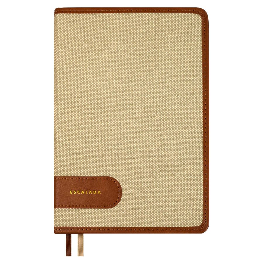 Ежедневник недатированный ESCALADA, А5, 160 л., арт. 70638/ 15 ПИКЕ БЕЖЕВЫЙ (кожзам: 146х211 мм, твёрдый переплёт, материал обложки: искусственная кожа "Пике"; способ крепления блока: ниткошвейный; декор: аппликация из искусственной кожи, тиснение фольгой; вн. блок: 160 л., PREMIUM-офсет кремового цвета 70 г/м², печать в одну краску (линия), справочный материал: есть; перфорация углов блока: нет; отделка среза: окрашивание пантоном; закладка/-и: два ляссе, каптал: есть; форзац: печать пантоном, тиснение фольгой, особенности: комбинированные материалы; персонализация возможна: да; индивидуальная упаковка: промостикер + ПЭТ-пакет)