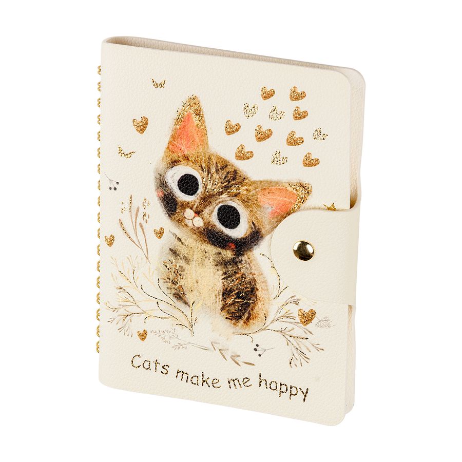 Недатированный ежедневник «Love me.Милый котик» от Bruno Visconti формата B6 – идеальное решение для динамичных деловых людей, которым важны комфорт и мобильность. Гибкая (flex) обложка из необычайно мягкой и фактурной искусственной кожи, скругленный угол обложки и блока, полускрытый гребень, позволяющий держать ежедневник открытым на столе и работать с комфортом, делая записи, фиксирующий хлястик на кнопке - все это визитная карточка ежедневника «Love me.Милый котик». Внутренний блок ежедневника изготовлен из высококачественной бежевой бумаги, обладающей плотностью 70 грамм и содержит 272 страницы.