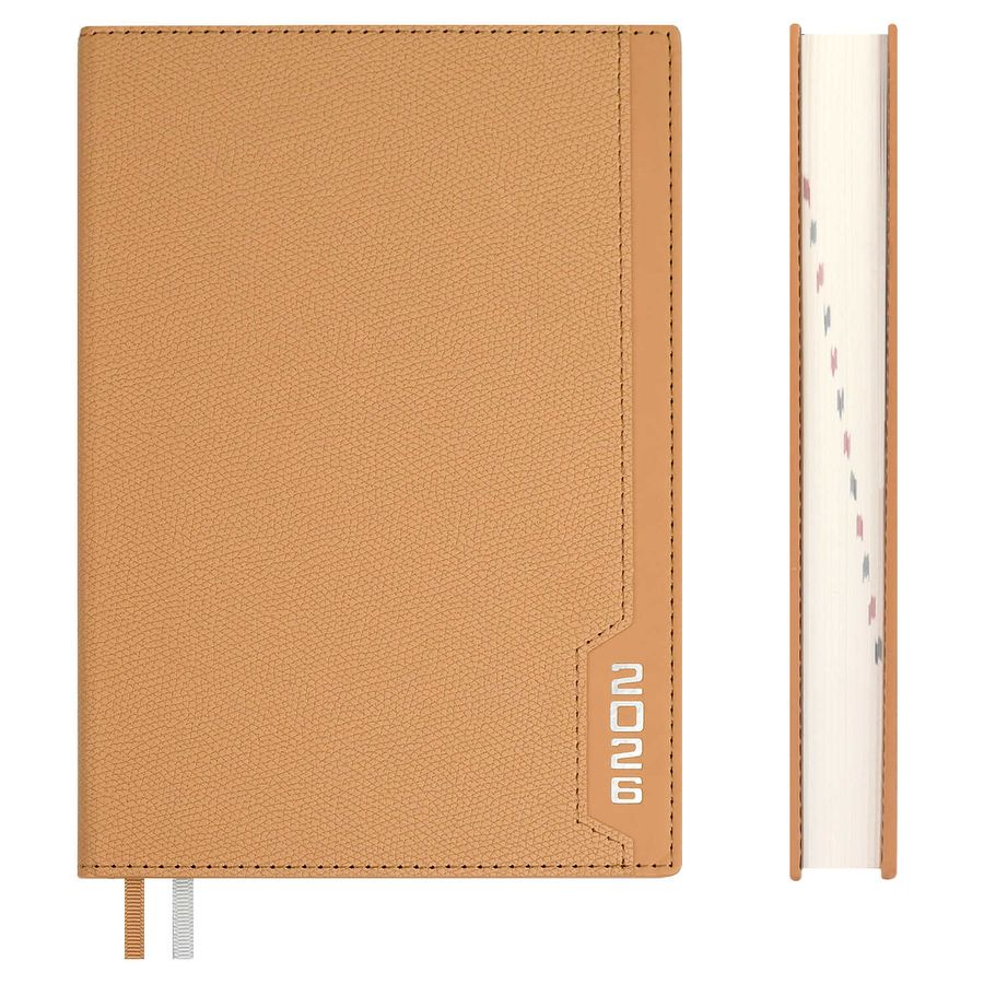 Ежедневник датированный 2026 ESCALADA, #ДУМАЙ КАК МИЛЛИАРДЕР, А5, 176 л., арт. 70238/ 15 ДЖУТ БЕЖЕВЫЙ (кожзам: 146x211 мм, твёрдый переплёт, запаянный край, материал обложки: искусственная кожа "Джут"; декор: тиснение фольгой; способ крепления блока: ниткошвейный; вн. блок: 176 л., кремовый офсет 70 г/м², печать в две краски (линия), справочный материал: есть; перфорация углов блока: нет; закладка/-и: два ляссе; каптал: есть; форзац: печать пантоном; особенности: в блоке использованы мотивирующие высказывания из книги "Думай как миллиардер", помогающие сформировать правильное отношение к финансам, профессиональной деятельности, своим способностям и к жизни в целом, комбинированные материалы; персонализация возможна: да; индивидуальная упаковка: промостикер + ПЭТ-пакет)