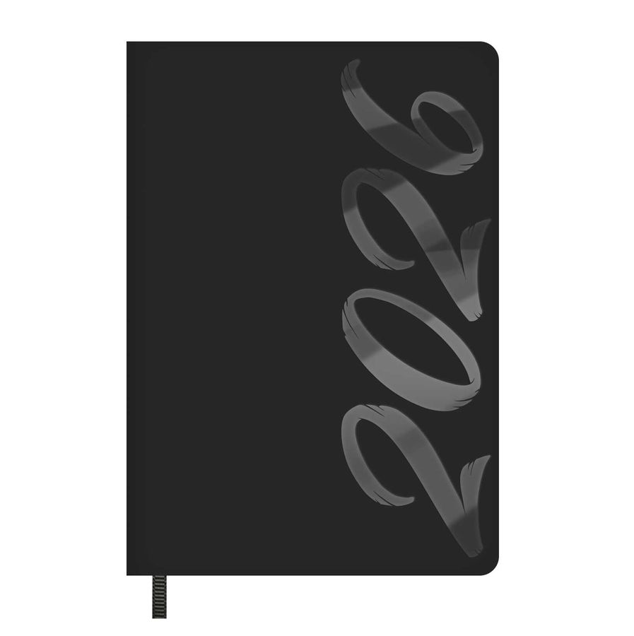 Ежедневник датированный 2026 ESCALADA, А5, 176 л., арт. 70232/ 15 СОФТ-ТАЧ ЧЁРНЫЙ (кожзам: 146х211 мм, твёрдый переплёт, материал обложки: искусственная кожа "Софт-тач"; декор: глиттер; способ крепления блока: ниткошвейный; вн. блок: 176 л., кремовый офсет 70 г/м², печать в две краски (клетка), справочный материал: есть; перфорация углов блока: нет; отделка среза: окрашивание пантоном; закладка/-и: одно ляссе; каптал: есть; форзац: печать пантоном; особенности: в блоке использованы мотивирующие высказывания из книги "Думай как миллиардер", помогающие сформировать правильное отношение к финансам, профессиональной деятельности, своим способностям и к жизни в целом; персонализация возможна: да; индивидуальная упаковка: промостикер + ПЭТ-пакет)