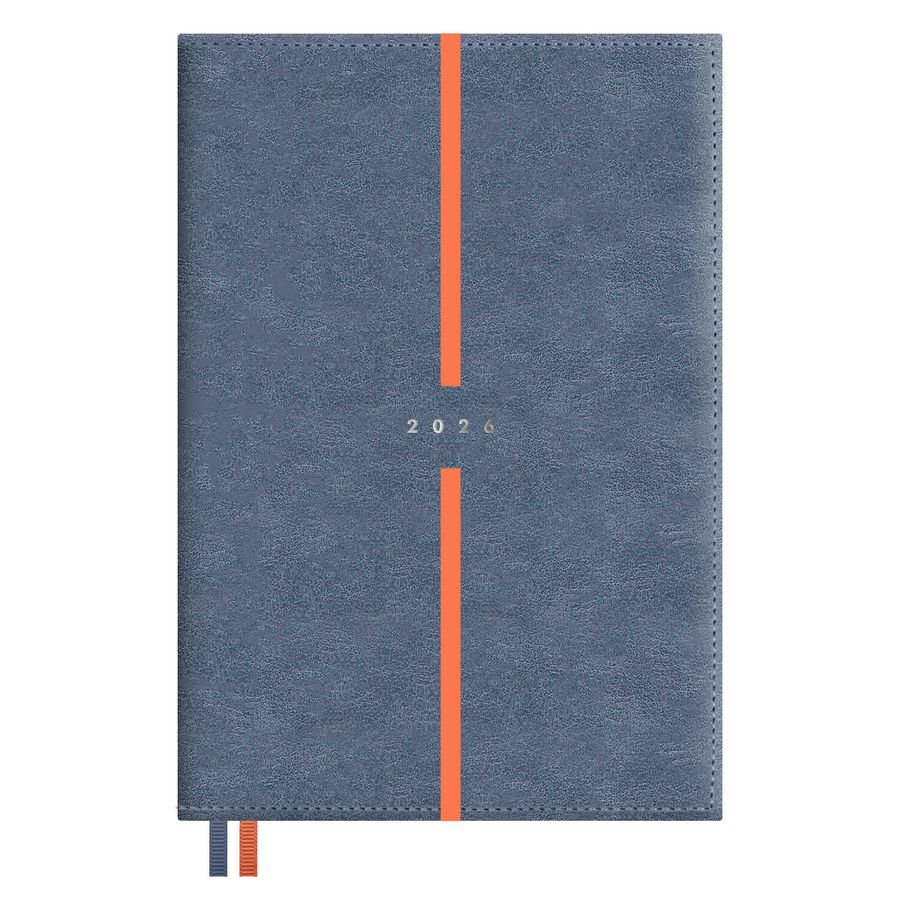 Ежедневник датированный 2026 ESCALADA, А5, 176 л., арт. 70264/ 15 ЛЕЗЕРЕТТО СИЗО-СИНИЙ (кожзам: 146x211 мм, мягкий переплёт, материал обложки: искусственная кожа "Лезеретто"; декор: тиснение фольгой, печать шелкографией в одну краску; способ крепления блока: ниткошвейный; вн. блок: 176 л., кремовый офсет 70 г/м², печать в две краски (клетка), справочный материал: есть; перфорация углов блока: нет; отделка среза: окрашивание пантоном; закладка/-и: два ляссе; каптал: есть; форзац: печать пантоном; персонализация возможна: да; индивидуальная упаковка: промостикер + ПЭТ-пакет)