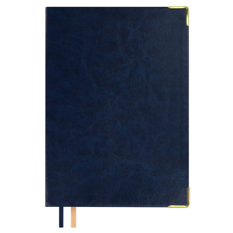 Ежедневник недатированный ESCALADA, #ДУМАЙ КАК МИЛЛИАРДЕР, А5, 160 л., арт. 70649/ 15 САРИФ СИНИЙ (кожзам: 146х211 мм, интегральный переплёт, материал обложки: искусственная кожа "Сариф"; способ крепления блока: ниткошвейный; декор: металлические уголки, тиснение фольгой; вн. блок: 160 л., белый офсет 70 г/м², печать в две краски (линия), справочный материал: есть; перфорация углов блока: нет; отделка среза: фольгирование; закладка/-и: два ляссе, каптал: есть; форзац: печать пантоном, особенности: в блоке использованы мотивирующие высказывания экстраординарной личности, предпринимателя и миллиардера, титулованного «Провидца века», шоумена и телеведущего, бывшего владельца конкурса красоты «Мисс Вселенная» и дважды президента США – Дональда Трампа; персонализация возможна: да; индивидуальная упаковка: промостикер + ПЭТ-пакет)