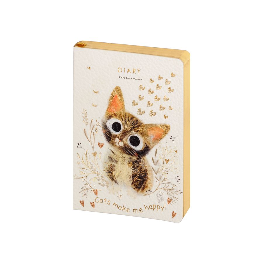 Недатированный ежедневник «Милый котик» формата А6 от Bruno Visconti для планирования рабочего времени, ведения записей. Гибкая (Flex) обложка ежедневника изготовлена из искусственной фактурной кожи. Ее яркий дизайн, дополненный тиснением золотой фольгой и в сочетании с золотым обрезом, привлекает внимание, придает ежедневнику особую статусность. Внутренний блок произведен из бежевой бумаги плотностью 80 г/кв.м и содержит 128 листов в серую линейку. Для быстрой навигации предусмотрено ляссе в цвет обреза шириной 6 мм – легко можно найти нужную страницу. Ежедневник «Милый котик» - идеальное решение для динамичных деловых людей, которым важны мобильность, качество, комфорт, а также для креативных людей, стремящихся подчеркнуть свою индивидуальность яркими деловыми аксессуарами.