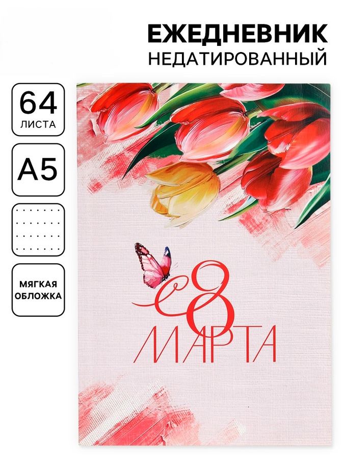 Ежедневник А5 64л недатир. мягк.обл. в точку 8 марта Тюльпаны ArtFox 10890136