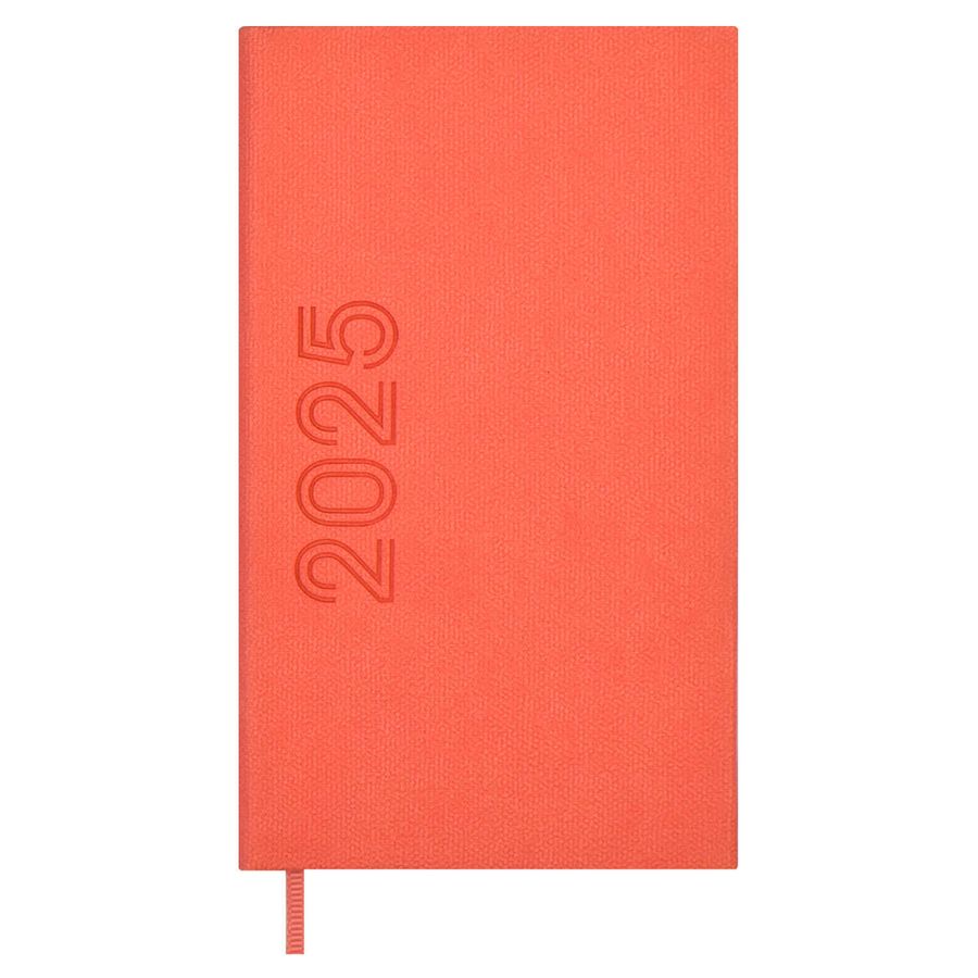 Еженедельник датированный 2025 ESCALADA, 85х145 мм, 64 л., арт. 67113/ 40 КАНВАС МИКРО КОРАЛЛОВЫЙ (кожзам: твёрдый переплёт, материал обложки: искусственная кожа "Канвас микро"; декор: блинтовое тиснение; способ крепления блока: ниткошвейный; вн. блок: 64 л., белый офсет 70 г/м², печать в две краски (линия), справочный материал: есть; перфорация углов блока: нет; закладка/-и: одно ляссе; каптал: есть; форзац: без печати; персонализация возможна: да; индивидуальная упаковка: ПЭТ-пакет)