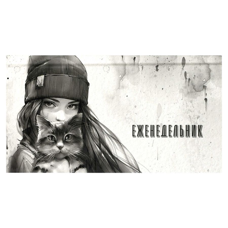 Еженедельник недатированный арт. 71558 ДЕВУШКА С КОТОМ. ОСЕНЬ / 171х93 мм, 64 л., твёрдый переплёт 7БЦ, полноцветная печать, выборочный УФ-лак, матовая ламинация. Блок - белый офсет, 65 г/м², печать в одну краску,