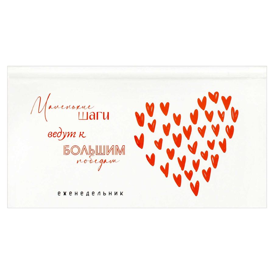 Еженедельник недатированный арт. 71562 МОТИВИРУЮЩИЕ СЕРДЕЧКИ / 171х93 мм, 64 л., твёрдый переплёт 7БЦ, полноцветная печать, выборочный УФ-лак, матовая ламинация. Блок - белый офсет, 65 г/м², печать в одну краску,