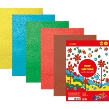 Набор д/твор. цветной фетр А4 5л.5цв. 1мм Яркие цвета deVENTE 8040682
