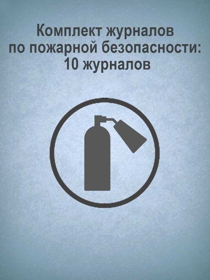 Комплект включает в себя: Журнал учёта противопожарных инструктажей Журнал учёта первичных средств пожаротушения Журнал технического обслуживания огнетушителей Журнал учета огнетушителей Журнал учёта противоаварийных и противопожарных тренировок Журнал учета предписаний Государственного пожарного надзора Журнал проверки противопожарного состояния помещений перед их закрытием Журнал проверки состояния охраны труда, техники безопасности, пожарной безопасности и промышленной санитарии Журнал учёта проведения вводного инструктажа по пожарной безопасности Журнал учета должностных инструкций