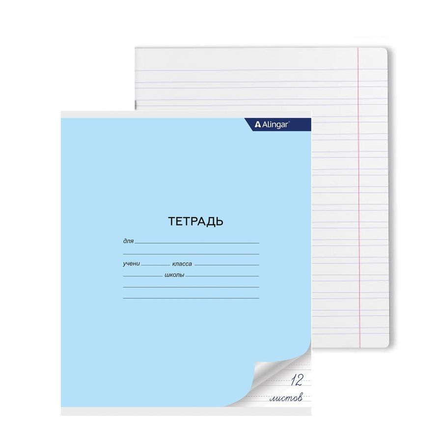 Тетрадь А5 12л узкая линия Однотон голубая эконом бел 100% мелов.картон ALINGAR AL7224