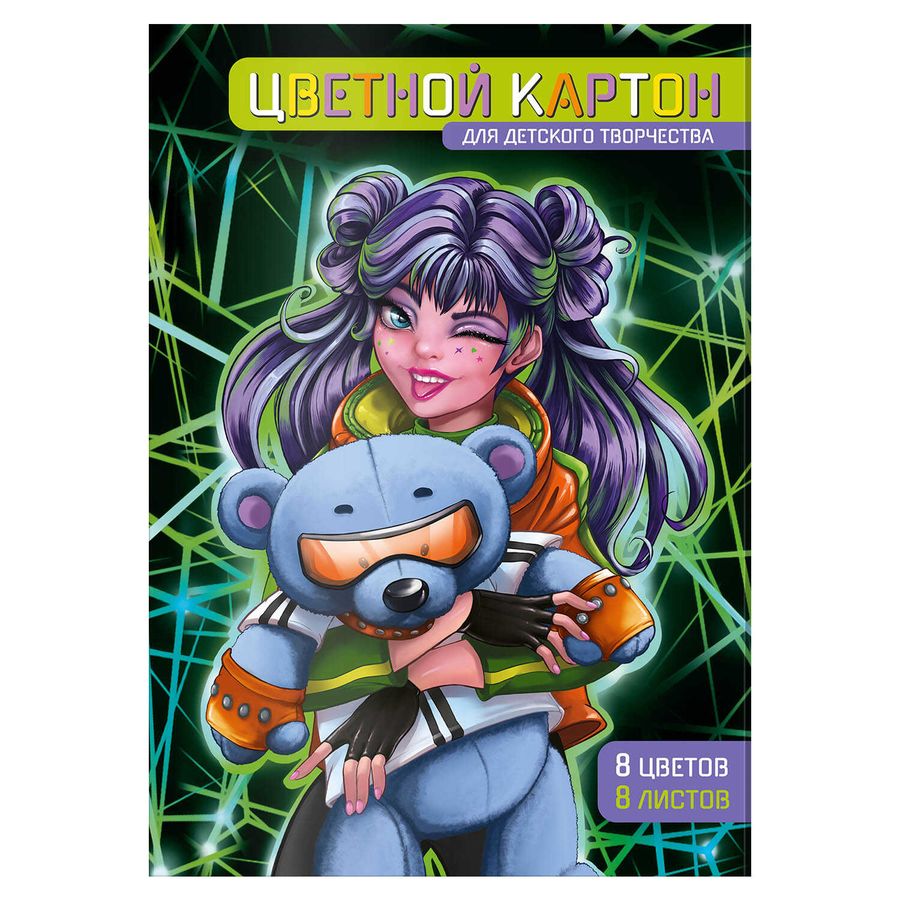 Цветной картон. Формат А4. Количество листов - 8. Материал блока: мелованный картон с белым оборотом. Красочность блока: 8 цветов, односторонняя печать. Тип обложки: папка с клапанами. Материал обложки: мелованный картон с серым оборотом 230 г/м2. Печать обложки: полноцветная печать.