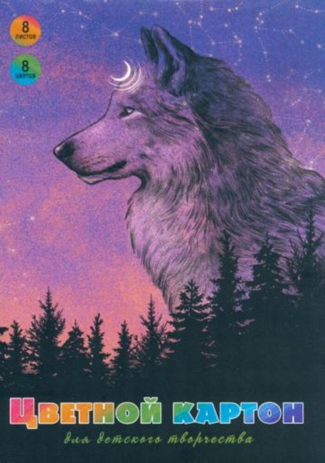 Картон цветной А4 8л 8цв немелованный Дух леса Alpha-Trend 160031