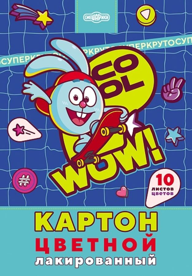 Картон цветной А4 10л 10цв лакированный Смешарики Крош HATBER 10Кц4л_30827