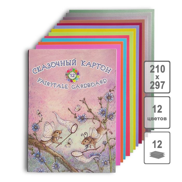 Набор цветного мелованного картона "Мышки-эльфы", А-4, 12цв.,12л. Набор из 12 листов мелованного картона неклассических цветов, среди которых есть и нежные, и яркие, интенсивные или сложные глубокие цвета, а также три металлика (серебряный, лавандовый и зеленый. Идеален для создания сказочных аппликаций и поделок, таких же изящных, как мышки на обложке. Подойдет для занятий дома, в детском саду и школе. Работа с картоном великолепно развивают детскую моторику и объёмно-пространственное мышление ребёнка, преображает детское творчество и помогает воплотить фантазии ребёнка. Картон легко режется ножницами, сгибается и клеится.