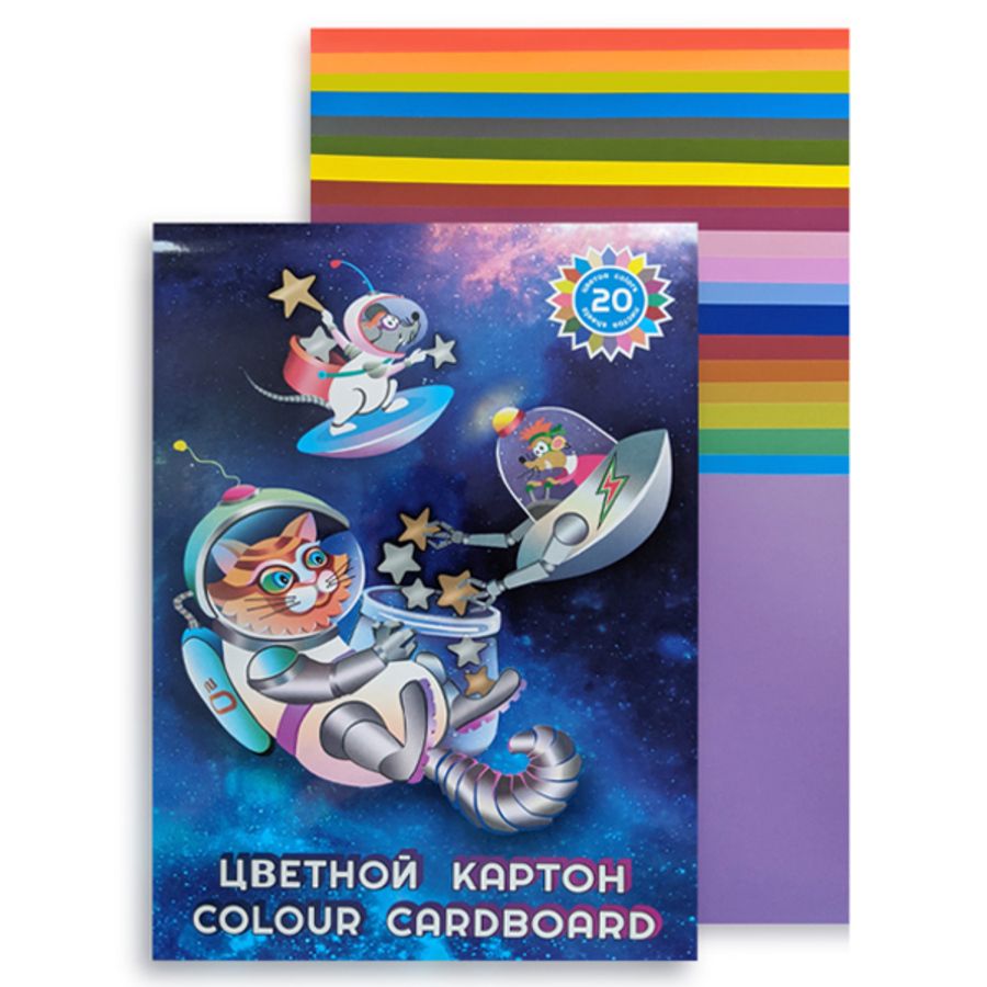 Набор цветного мелованного картона на склейке "Космический урожай", А-4, 20цв.,20л. В наборе «Космический урожай» были собраны очень красивые, при этом нестандартные цвета картона: всего в наборе их 20, 7 из них с эффектом металлик, 9 – глубокие, сложные оттенки, а также 4 флуоресцентных цвета. Такой картон будет отличным дополнением к наборам со стандартной цветовой гаммой, и поможет расширить творческие возможности. Картон в наборе мелованный, односторонний, это идеальный вариант для создания ярких аппликаций.
