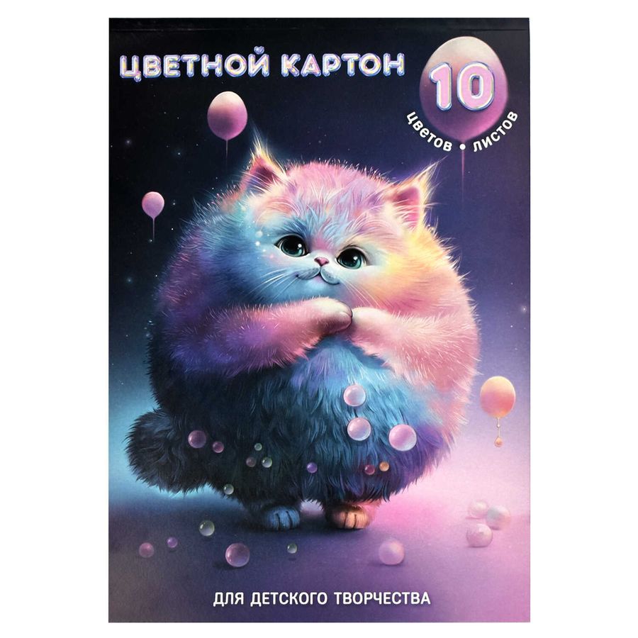 Цветной картон, формат А4, количество листов 10, клеевое скрепление, мелованный картон с белым оборотом, 200 г/м²,