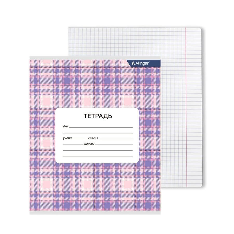 Тетрадь А5 24л клетка скрепка мелов.картон Шотландская клетка стандарт бел 100% ALINGAR AL7233