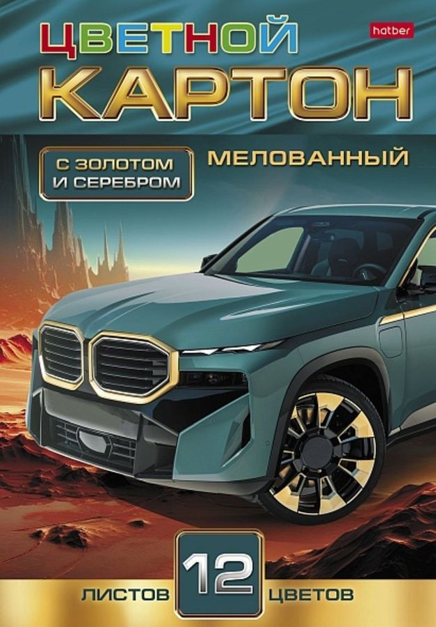 Картон цветной А4 12л 12цв мелованный АВТОстиль золото+серебро склейка HATBER 12Кц4к_32518