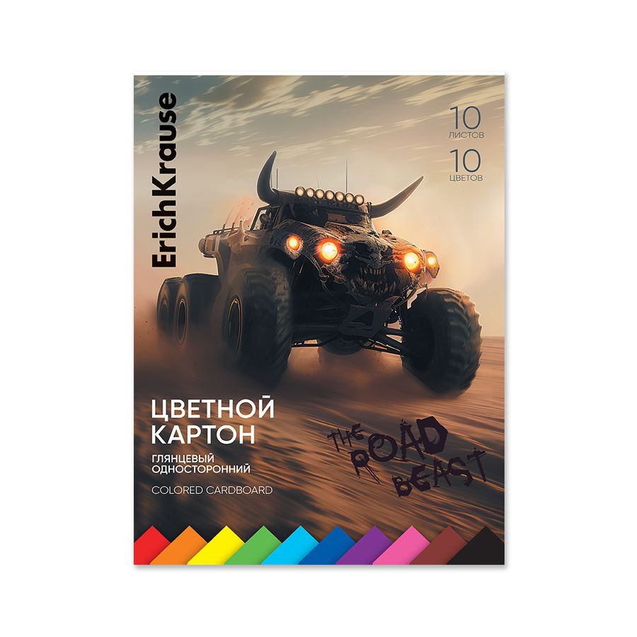 Цветной картон глянцевый односторонний формата А4 (203х280 мм). В наборе 10 листов 10 базовых цветов (красный, оранжевый, желтый, зеленый, голубой, синий, фиолетовый, розовый, коричневый, черный). Плотность наполнения — 170 г/м2. Тип скрепления — клей. На внутренней стороне обложки приводятся инструкции по изготовлению поделок. Упакована в термоусадочную пленку по 10 штук.