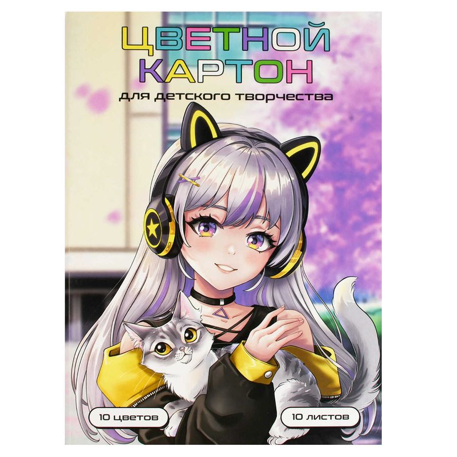 Цветной картон арт. 69963 МАЛЫШКА В НАУШНИКАХ /А4, папка с клапанами, 10 л, обложка - полноцветная печать, мелованный картон с серым оборотом 230 г/м², блок - мелованный картон с серым оборотом, 200 г/м², 10 цветов, односторонняя печать /