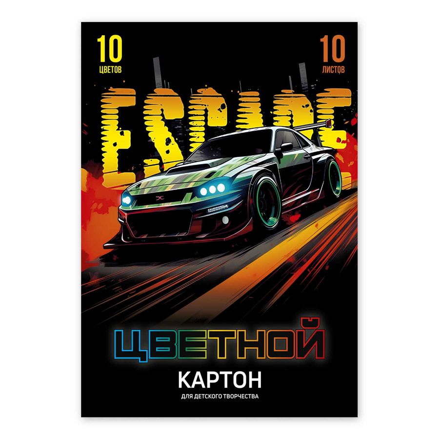 Цветной картон арт. 69974 ПОБЕГ /А4, клеевое скрепление, 10 л, обложка - полноцветная печать, мелованный картон с серым оборотом 230 г/м², блок - мелованный картон с белым оборотом, 200 г/м², 10 цветов, односторонняя печать