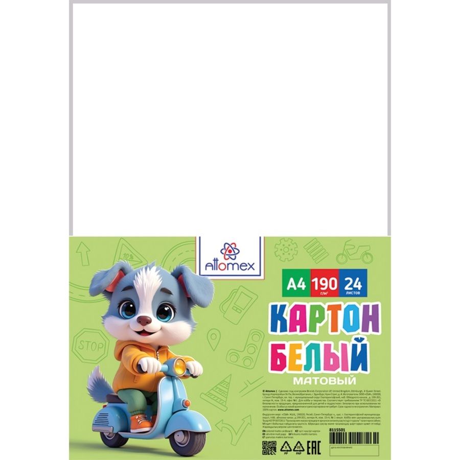 Картон белый "Attomex" A4 (200x280 мм) матовый (немелованный) 190 г/м², 24 л, в пластиковом пакете