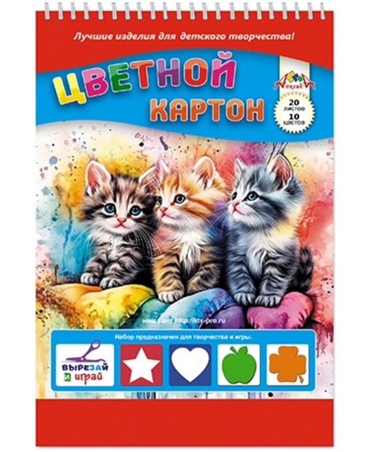 Картон цветной А4 20л 10цв немелованный Три котенка 200г/м2 гребень АППЛИКА С2806-35