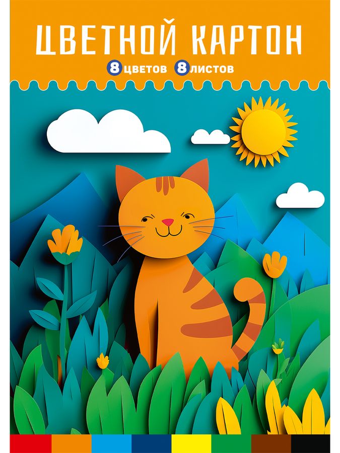 Цветной картон формата А4 идеально подойдет для детского творчества! С его помощью можно создать красивые аппликации и объёмные поделки. Картон плотный, поэтому на нём можно рисовать фломастерами или красками. Количество листов: 8, 8 цветов.