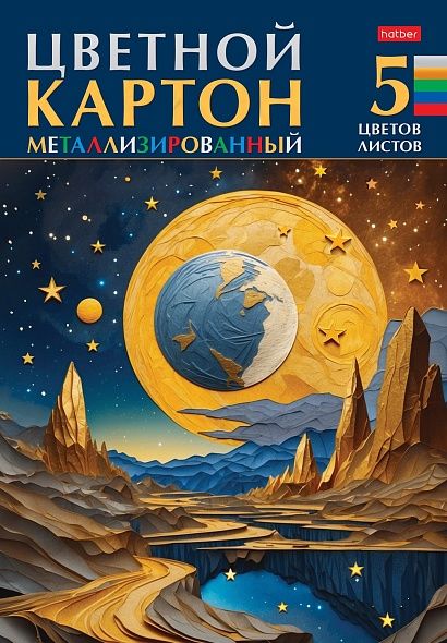 Картон цветной А4 5л 5цв металлизированный Звездопад в папке HATBER 5Кц4мт_32450