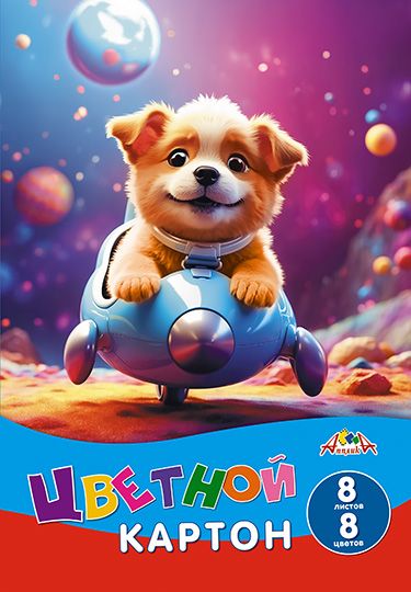 Картон цветной А4 8л 8цв немелованный Щенок-путешественник 200г/м2 в папке АППЛИКА С0003-72