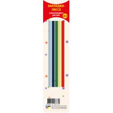Закладки-ляссе для книг и учебников форматом А5 (длина ляссе 275 мм), ширина ляссе 6 мм, в наборах 5 закладок разных цветов, каждая закладка-ляссе - с клеевым слоем для крепления к книге. Упакованы в пакеты с европодвесом