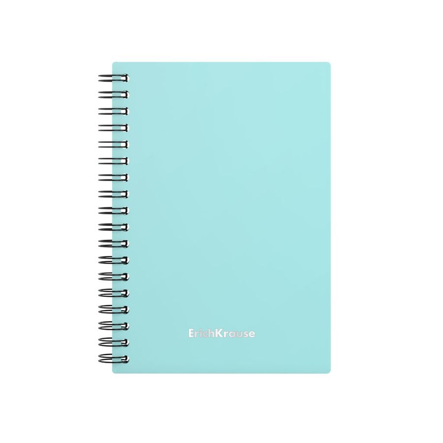 Тетрадь общая формата А6 (102x146 мм). Обложка из высококачественного износостойкого матового пластика с фактурой «песок». Пастельный цвет обложки. В блоке 80 листов в клетку. Бумага офсетная плотностью 60 г/м2. Цвет линовки - синий. Скругленные уголки обложки. Тип скрепления - спираль. Тетради одного цвета упакованы в термоусадочную пленку по 5 штук.
