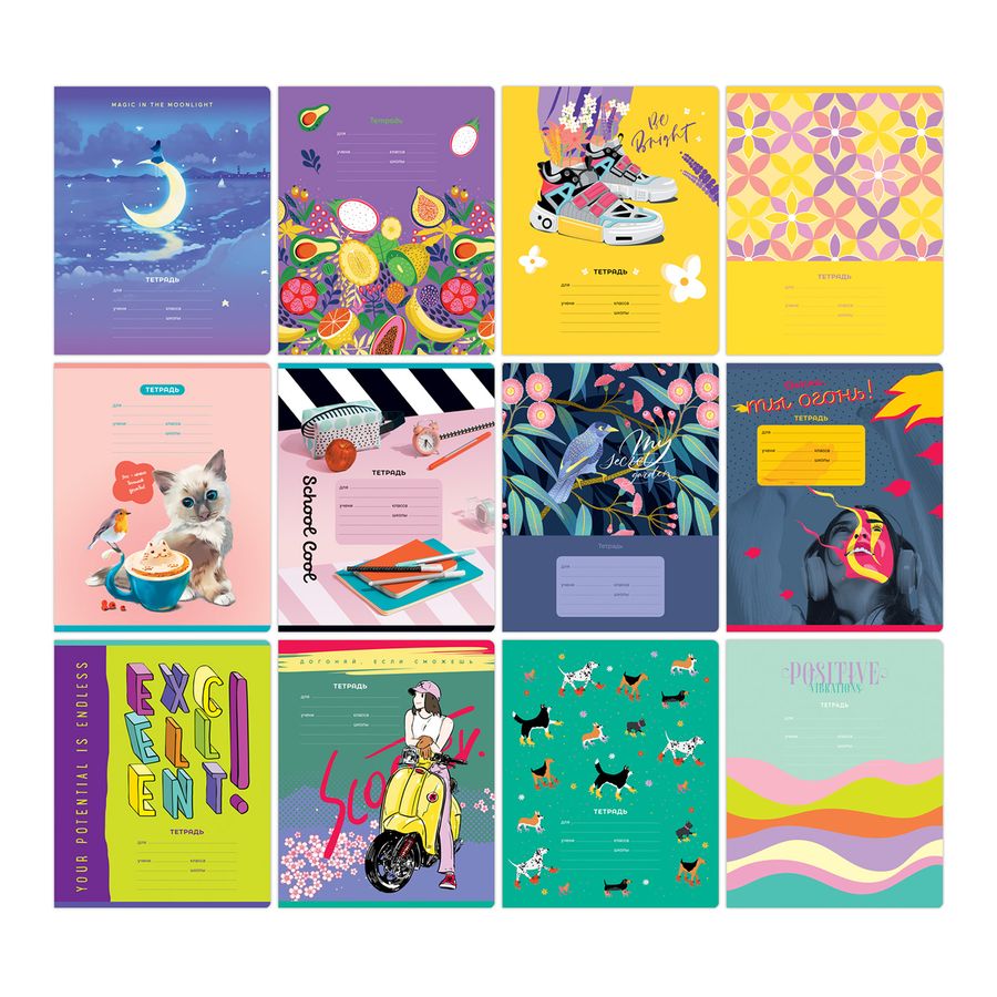 ВНИМАНИЕ: БОЛЬШИНСТВО ЭЛЕМЕНТОВ В НАБОРЕ МОГУТ ИМЕТЬ ОДИНАКОВЫЙ ДИЗАЙН. Тетрадь BG серии «Mix-12. Девочки» формата А5 (165*205 мм) на скобе состоит из 24 листов. Внутренний блок – офсетная бумага плотностью 65 г/м², белизна – 100%, линовка – клетка с полями. Обложка тетради изготовлена из мелованного картона. Сзади на обложке размещена таблица умножения. Обложки выполнены в ярком и креативном дизайне. Тетради отлично подходят для школьников любого года обучения и обязательно понравятся девочкам. • Количество листов: 24; • Линовка: клетка с полями; • Формат тетради: А5(165*205 мм); • Крепление: скрепка; • Материал обложки: мелованный картон