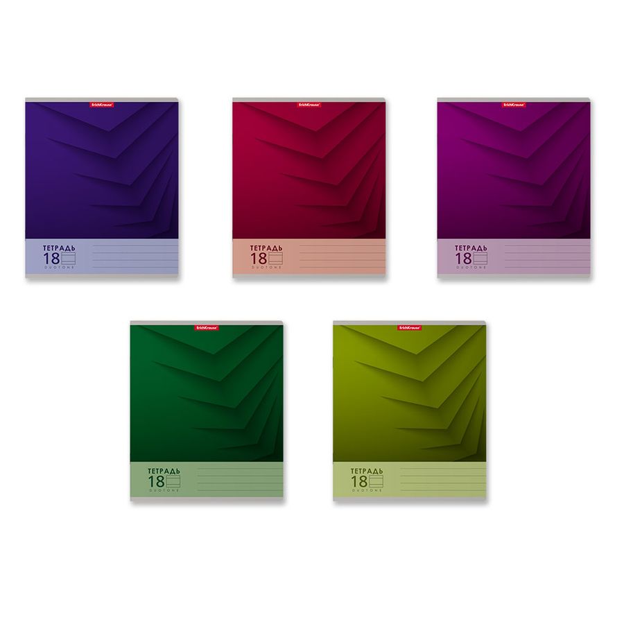 Тетрадь школьная ученическая формата А5+ (170х203 мм). Обложка из высококачественного мелованного картона плотностью 180 г/м2. В блоке 18 листов в линейку с полями. Бумага офсетная плотностью 60 г/м2. Цвет линовки - синий. Скругленные уголки обложки и блока. Тип скрепления - скоба. Тетради разных цветов упакованы в термоусадочную пленку по 10 штук.
