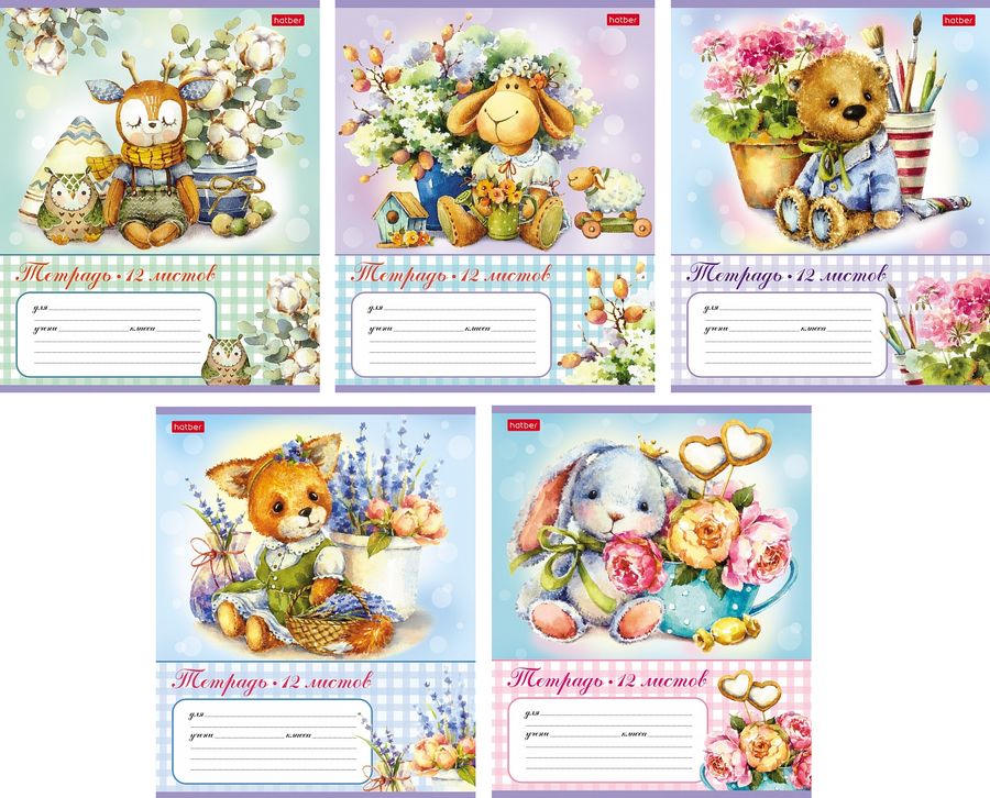 Тетрадь А5 12л клетка мелов.картон МимиЛапки тиснение ассорти 5 диз. HATBER 12Т5тВ1