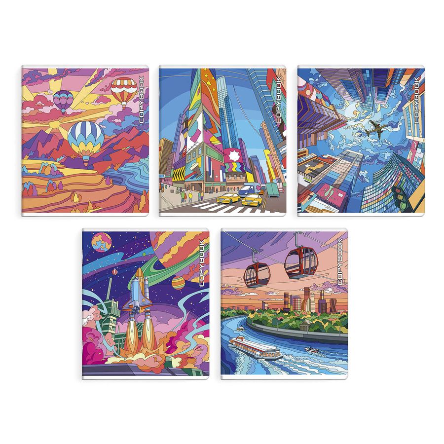 Тетрадь, 48 л, клетка, арт. 63163/ 10 МИР В ЯРКИХ КРАСКАХ мягкий переплёт (2 скобы), мелованный картон 190 г/м², ламинация "софт-тач" вельвет Упаковка Ассорти/
