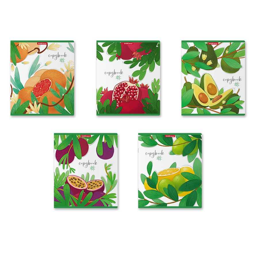 Тетрадь общая формата А5+ (170х203 мм). Обложка из высококачественного мелованного картона плотностью 190 г/м2. Отделка - выборочный УФ-лак. В блоке 48 листов в клетку с полями. Бумага офсетная плотностью 60 г/м2. Цвет линовки - синий. Скругленные уголки обложки и блока. Тип скрепления - скоба. Тетради одного цвета упакованы в термоусадочную пленку по 5 штук. Товар поставляется в нескольких вариантах цвета без возможности выбора.