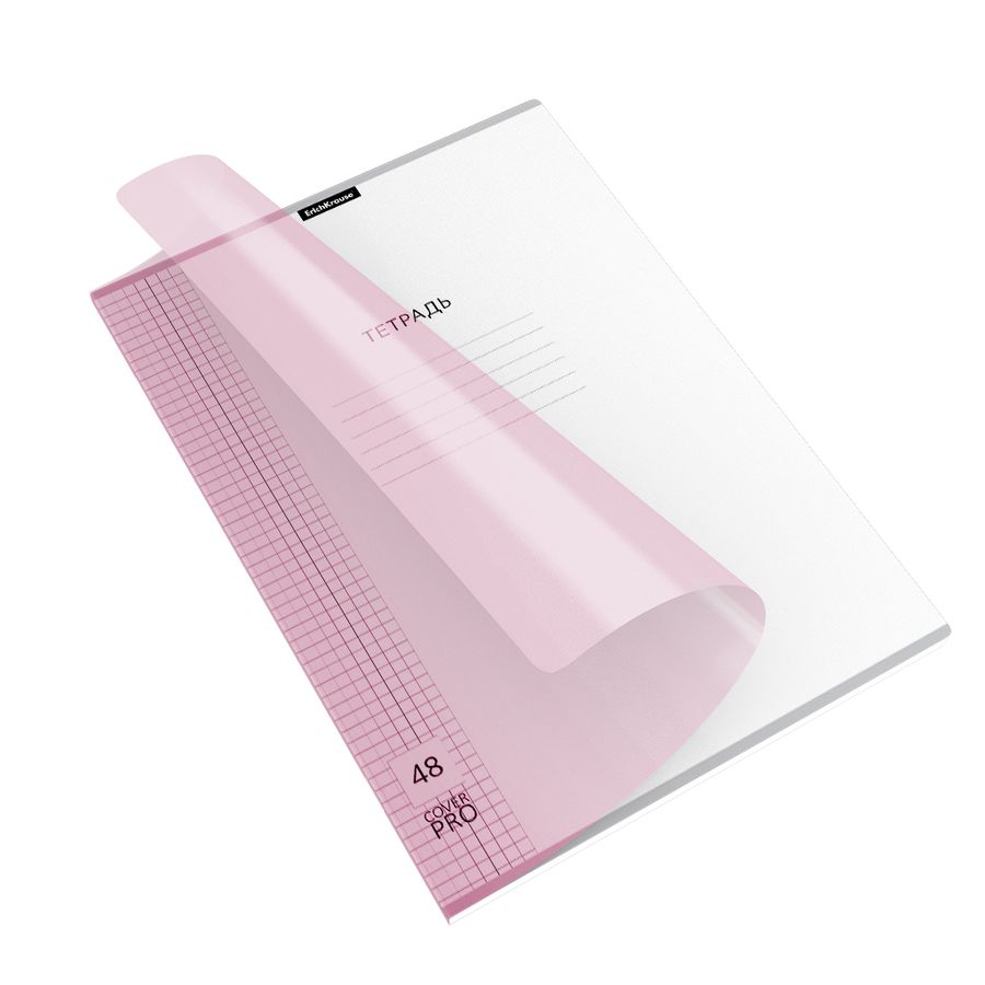 Тетрадь общая ученическая формата А4 (210x297 мм). Двойная обложка: внешняя выполнена из высококачественного износостойкого цветного глянцевого пластика с фактурой «зеркало», внутренняя — из офсетной бумаги. В блоке 48 листов в клетку. Бумага офсетная плотностью 60 г/м2. Цвет линовки — синий. Скругленные уголки обложки и блока. Тип скрепления — скоба. Тетради упакованы в термоусадочную пленку по 5 штук.