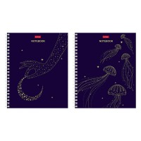 Тетрадь общая, 96 листов в клетку, обл. картон, выборочное УФ-лакирование, блок – офсет, клетка без полей, металлический гребень.