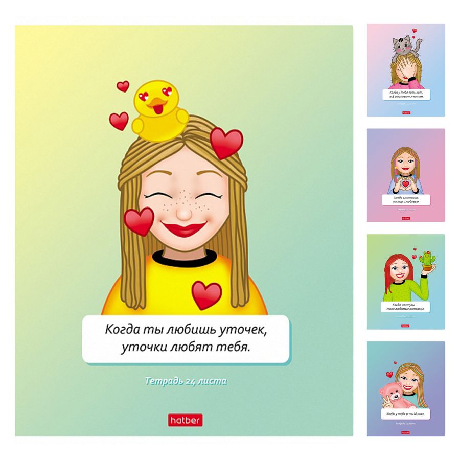 Тетрадь А5 24л клетка скрепка Яркие эмоции ассорти HATBER 24Т5В1