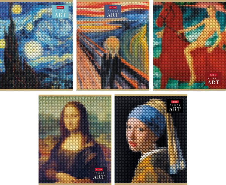 Тетрадь А5 96л клетка скрепка мелов.картон Пиксель АРТ ассорти HATBER 96Т5В1