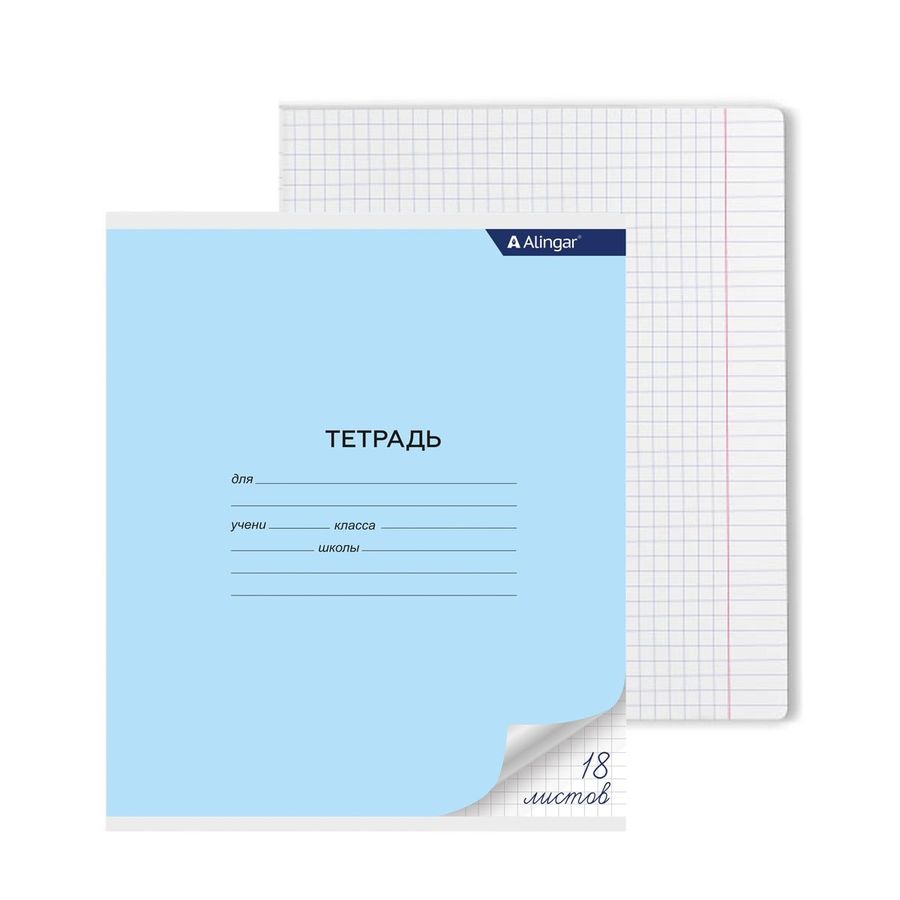 Тетрадь А5 18л клетка Однотон Голубая бел 100% мелов.картон ALINGAR AL7227